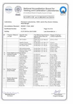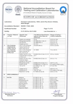 Products included within the scope of NABL are Iron Ore, Manganese Ore, Limestone, Dolomite, Magnesite, Calcite, Gypsum, Coal, Fly and Coal Ash, Metals & Alloys (Zinc Ash/Dross/Spelter/Dust ), Industrial Fine Chemicals (Zinc Oxide, Zinc Chloride, Zinc Sulphate Heptahydrate, others etc.), Drinking Water, Packaged Drinking Water, Ground Water, Swimming Pool Water, Surface Water, Domestic and Industrial Wastewater, Bakery & Confectionery, Pulses Cereals and its products, Milk & Milk Products, Spices and Condiments, Tea, Coffee & Cocoa Products, Fruits Vegetables & its Products, Jams Juices & Concentrates, Food Additives & Preservatives, Edible Oils & Fats, Beverages Alcoholic/ Non Alcoholic, Animal Food & Feeds.