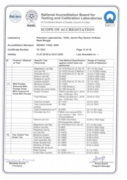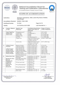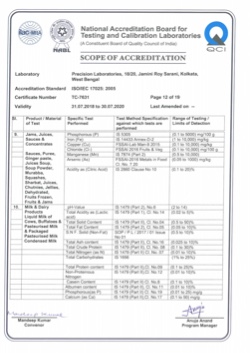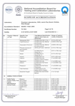 Products included within the scope of NABL are Iron Ore, Manganese Ore, Limestone, Dolomite, Magnesite, Calcite, Gypsum, Coal, Fly and Coal Ash, Metals & Alloys (Zinc Ash/Dross/Spelter/Dust ), Industrial Fine Chemicals (Zinc Oxide, Zinc Chloride, Zinc Sulphate Heptahydrate, others etc.), Drinking Water, Packaged Drinking Water, Ground Water, Swimming Pool Water, Surface Water, Domestic and Industrial Wastewater, Bakery & Confectionery, Pulses Cereals and its products, Milk & Milk Products, Spices and Condiments, Tea, Coffee & Cocoa Products, Fruits Vegetables & its Products, Jams Juices & Concentrates, Food Additives & Preservatives, Edible Oils & Fats, Beverages Alcoholic/ Non Alcoholic, Animal Food & Feeds.