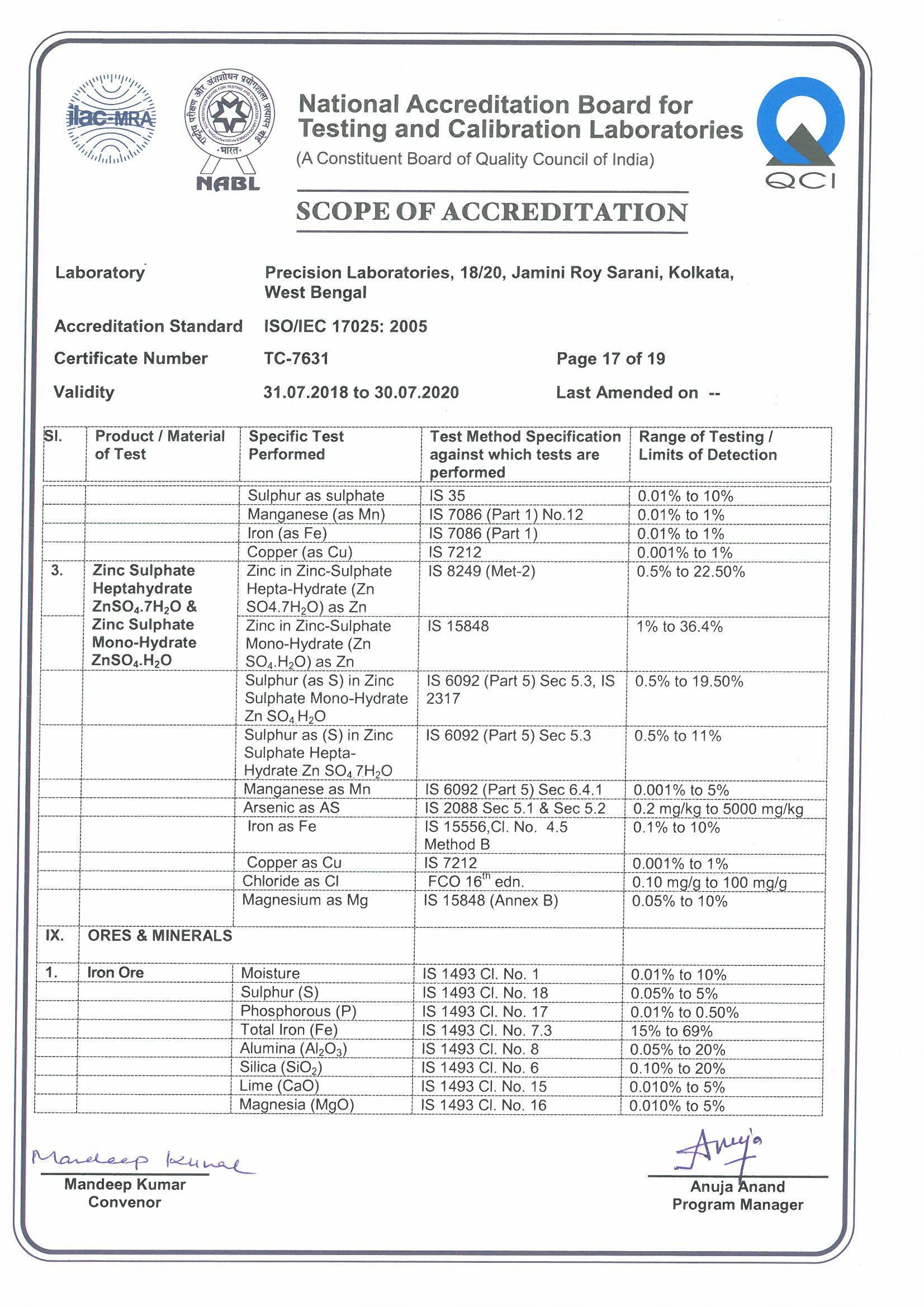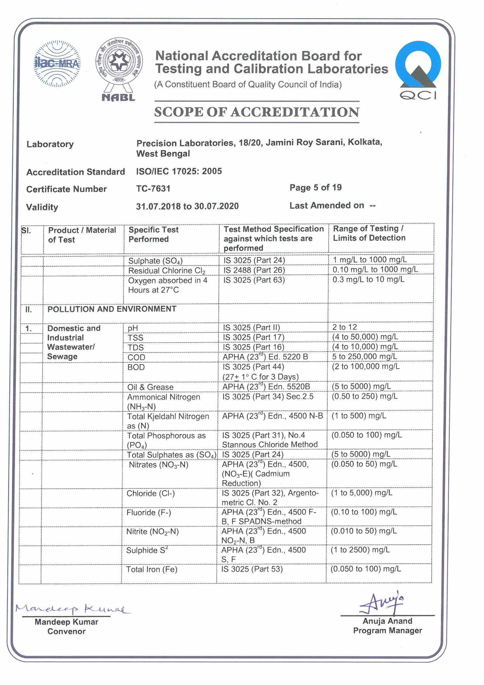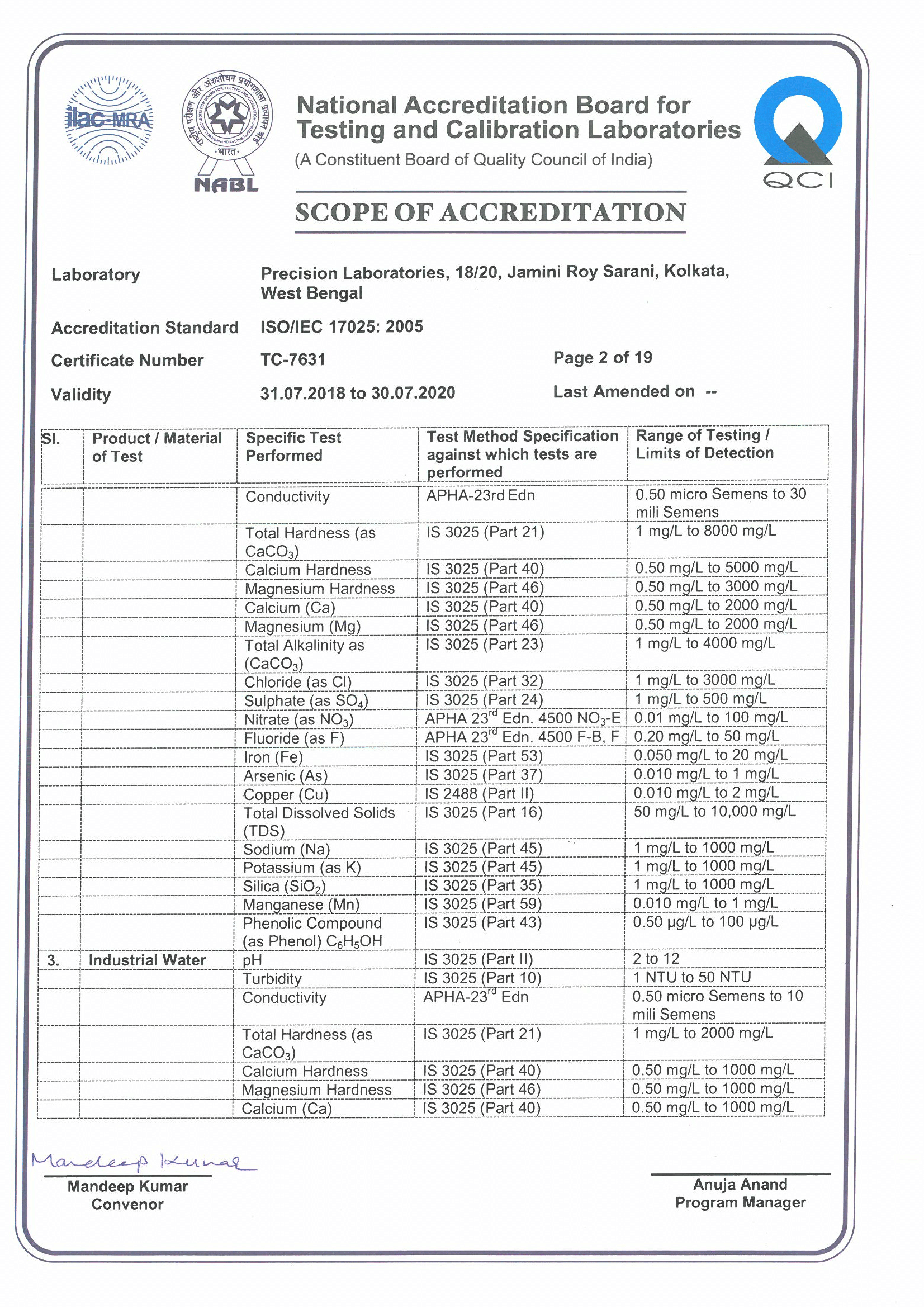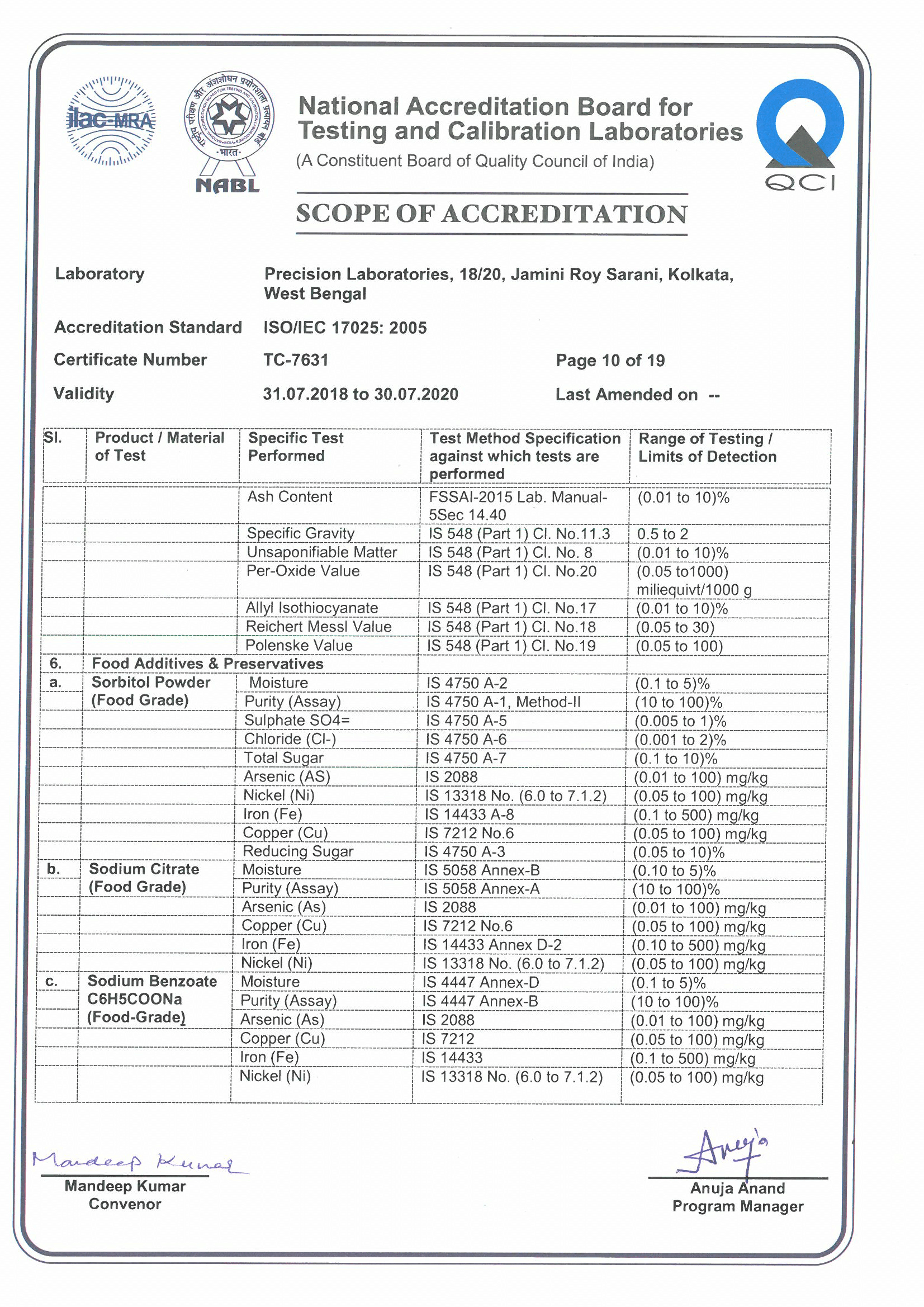 NABL Certificate No. TC 7631